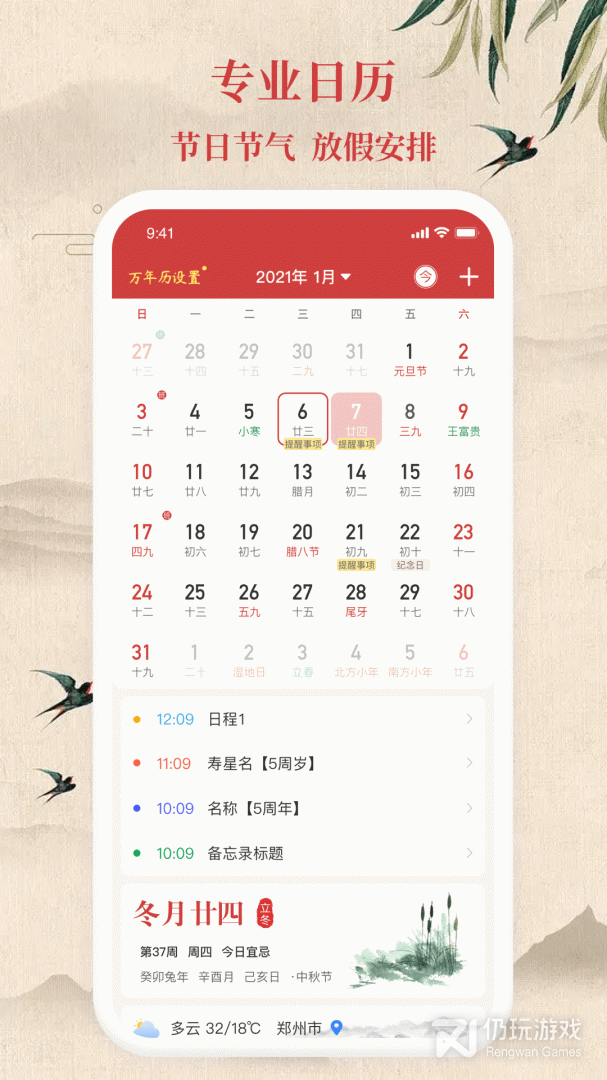 2、传统万年历下载,一款实用易用的日历黄历查询工具,通过传统万年历快速查询公历日期,了解黄历宜忌,还有天气实时动态和空气质量数据,欢迎下载