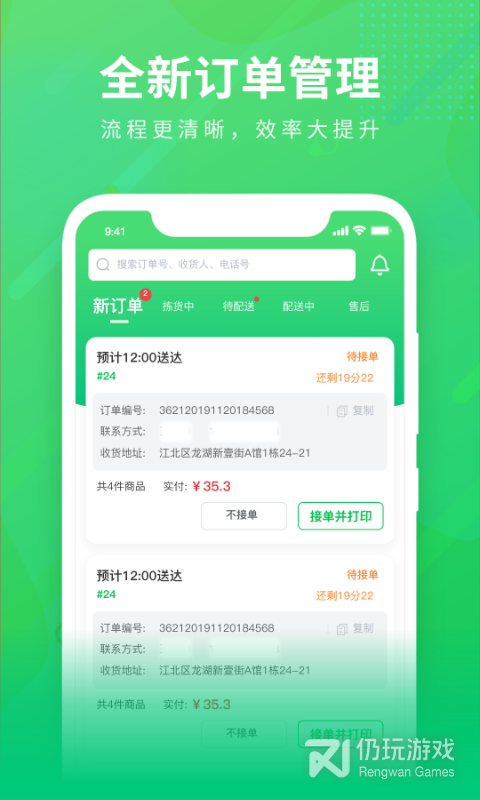 [订单管理] 随时随地自动接单,处理订单,操作订单。