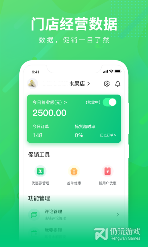 [商家中心] 一键开关门店,账单实时更新,管理店铺更轻松。