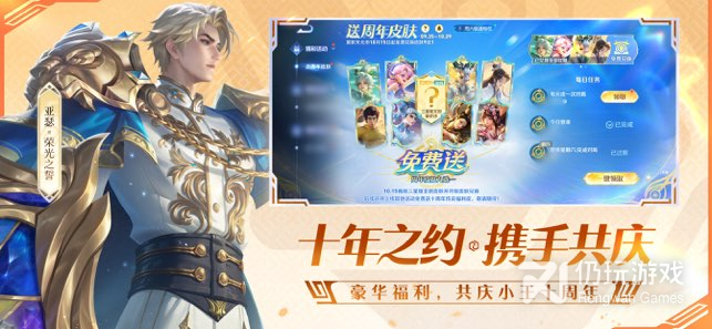 2. 新赛季-天元:S41新赛季现已开启,参与赛季排位可获得赛季专属皮肤【亚瑟-荣光之誓】。豪华福利活动开启,与本命英雄并肩,共赴十年之约。