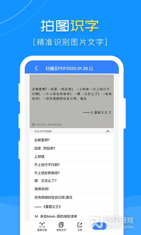5、文字复制:一键复制识别后的文字,也可自由复制识别后的文字粘贴至所需之地