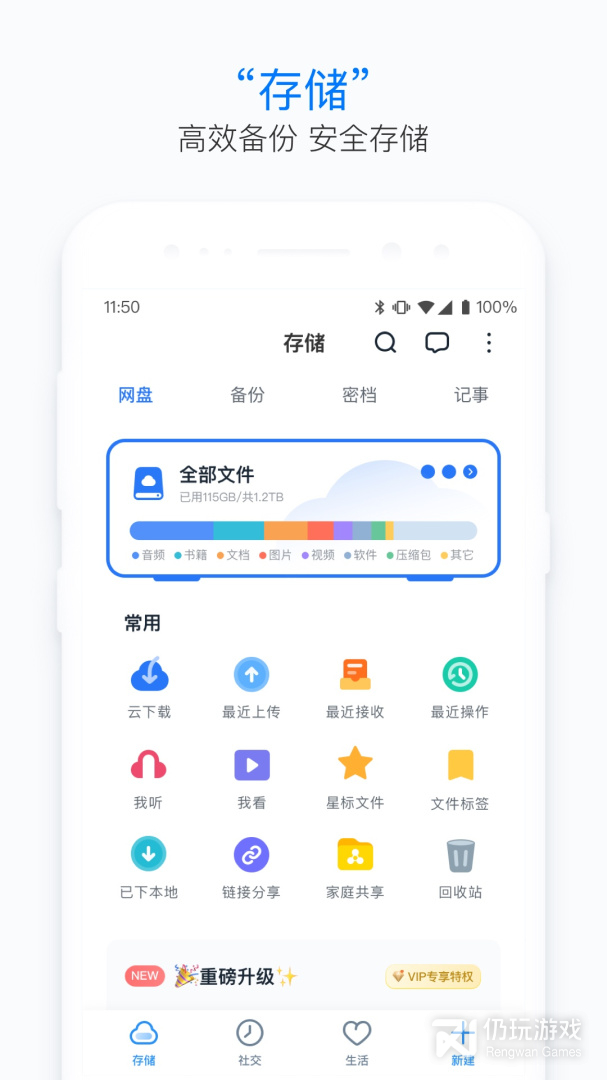 115生活软件是安全稳定、高效智能,能与用户相伴一生的个人云产品,能够帮助用户保存海量信息化数据,并可实现数据多端同步、文件随存快取;在基于数据安全存储的基础上,还提供了智能管理、兴趣社交、生活服务等功能!