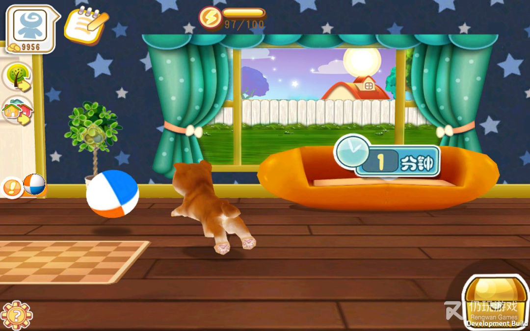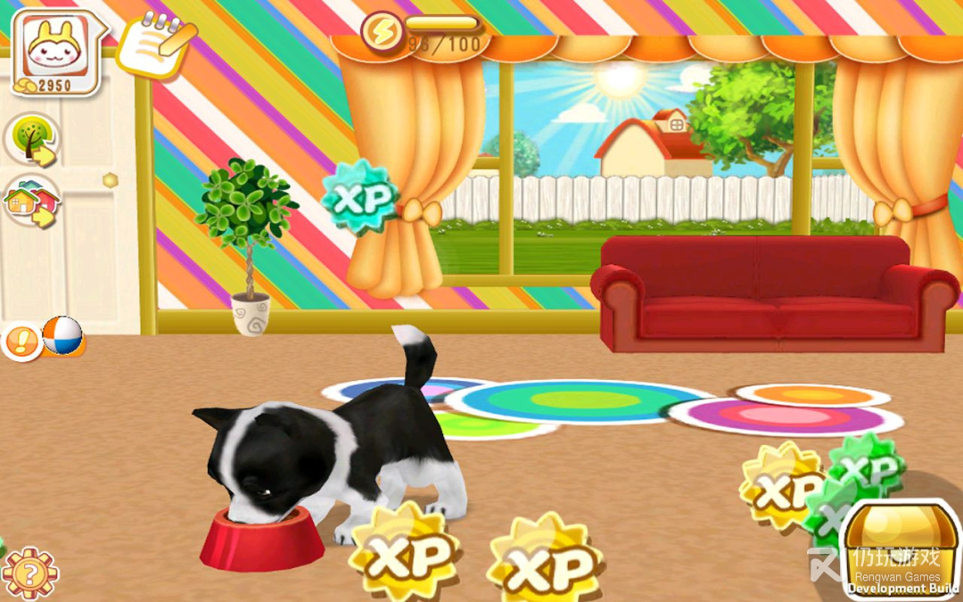 2、触屏互动:抚摸小狗,喂食喂水,为小狗洗澡,与小狗玩耍