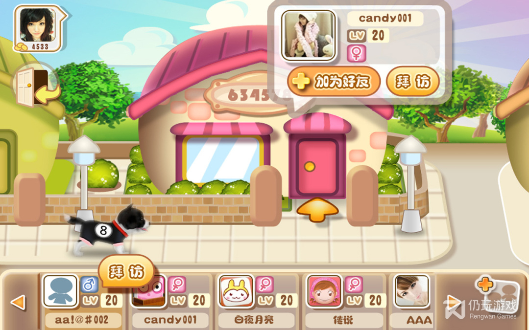 2、你将与玩家一起互动,各种可爱的小狗,有趣的玩具,还有多种个性的装扮,好友们可以互相拜访,增进人与人之间的交流。你还在等什么