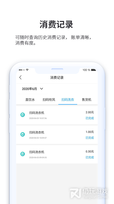 初版《小天同学》,一款集洗浴、吹风、直饮水、洗衣等物联网设备为一体主要服务于高等院校的手机客户端软件