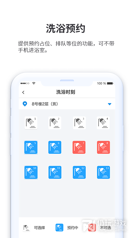 洗浴预约提供预约占位、排队等位的功能,可不带手机进浴室。