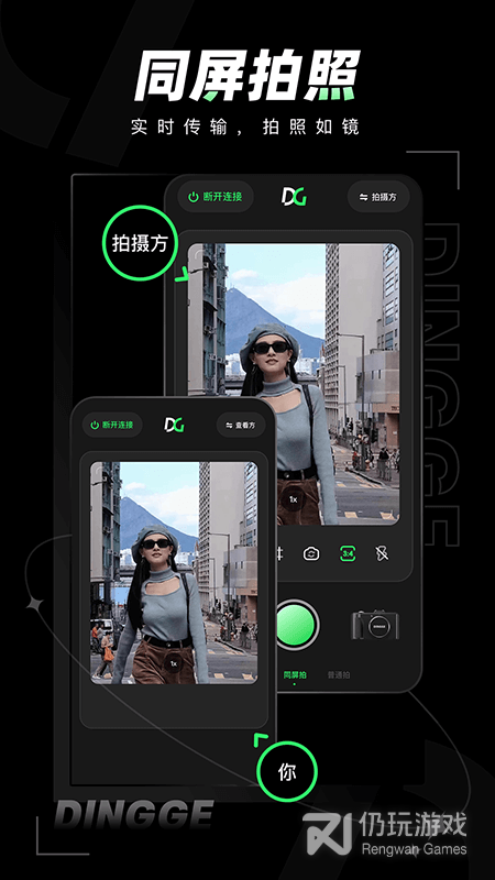 5、连接拍照者手机,在自己的手机上看自己摆姿势.可以像在照镜子一样轻松的调整姿势