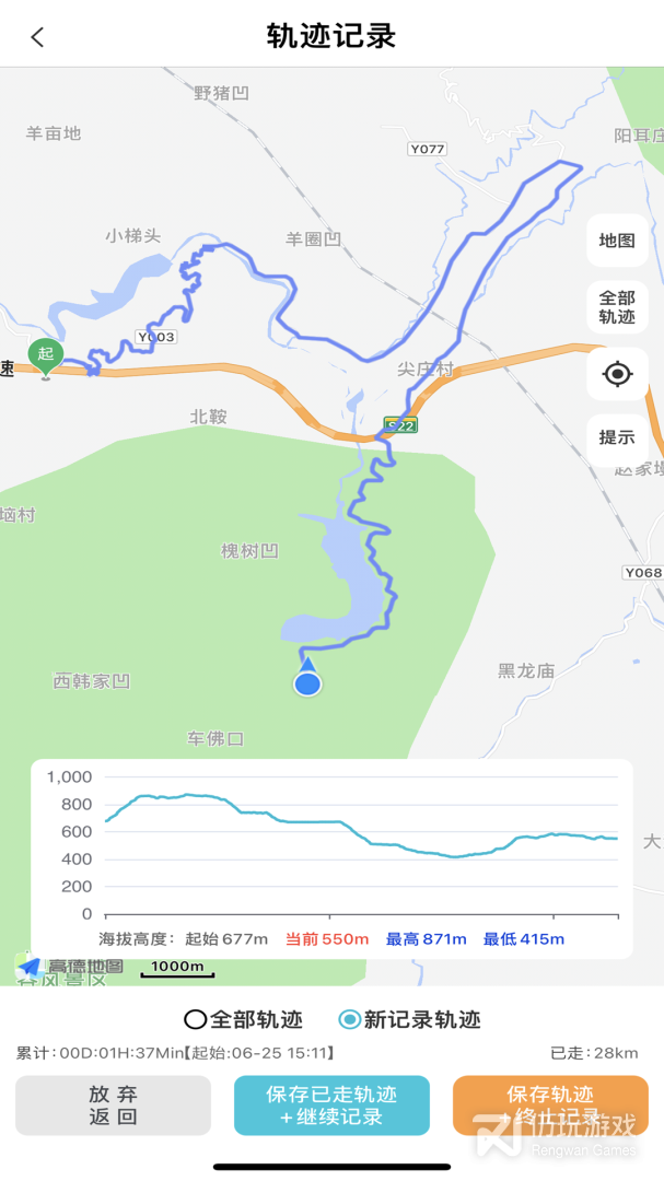 已上传轨迹显示:滤除时间间隔超过30分钟(可设置)位置点之间连线、以及累计时间与累计里程的统计。