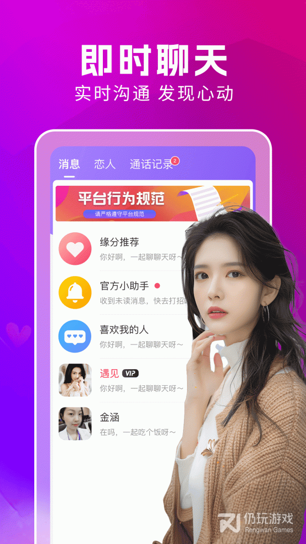 3、实时在线聊天功能,用户可以与心仪的异性进行互动和沟通,增加亲密度和信任度。