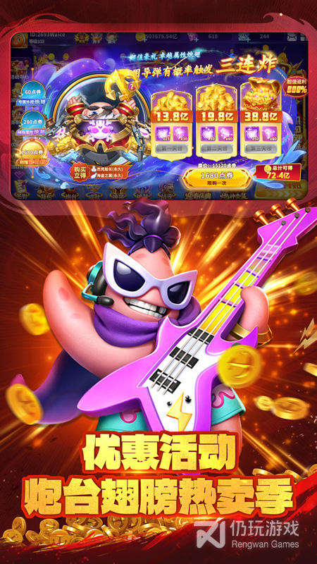 1、新增数十种新品鱼类,全新道具让你一炮就能金币拿到手软,多人在线实时比拼,激斗之余还有休闲小游戏让你轻松一下