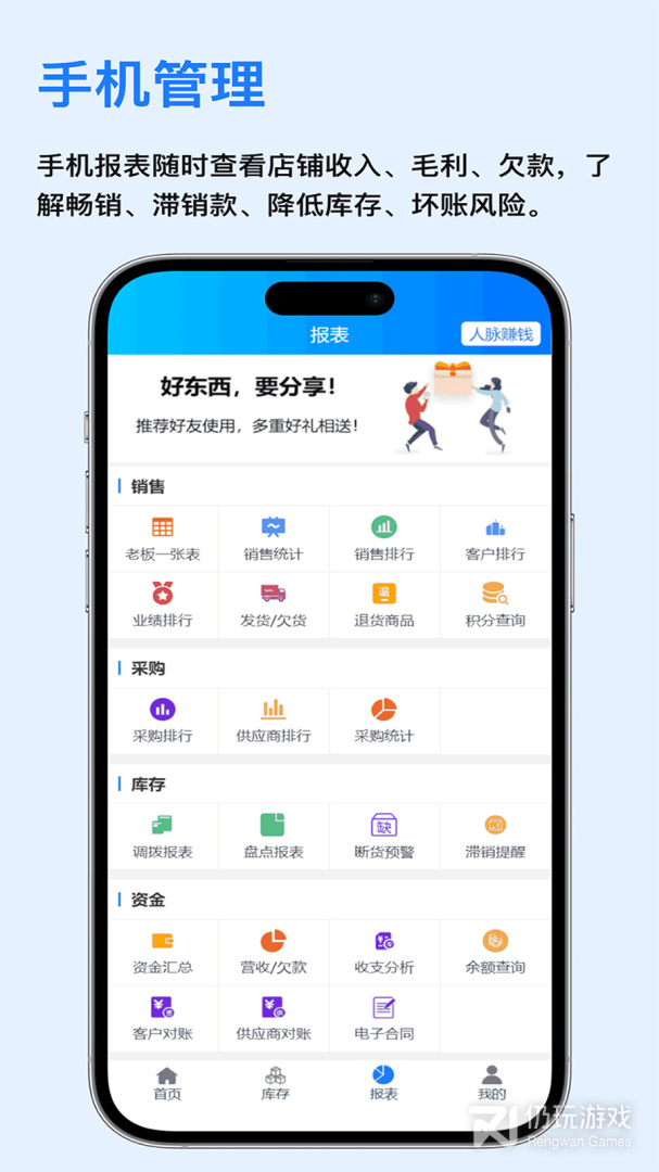 2、销售汇总、毛利、畅销和库存排行报表速订货进销存app清晰呈现