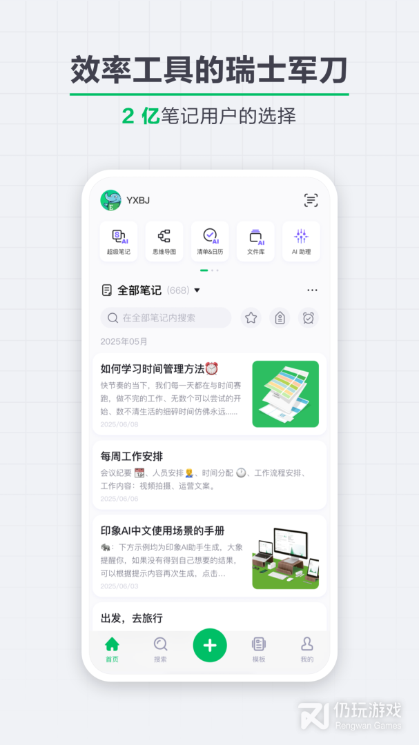印象笔记2024版是一款免费且简单实用的生活必备应用。它强大的跨平台同步功能,让你随时随地记录一切有价值的信息,保留美好的记忆、保存每一瞬间的灵感,一辈子不忘记!印象笔记将帮助你在任何电脑、手机上记事、拍照、剪辑网页、创建待办事项、录制语音记录;配合其特殊的文字、图片搜索能力,让你在需要时都能快速方便的找到它们。全面的信息整理帮助你维持有序的条理,大幅度提高工作效率!