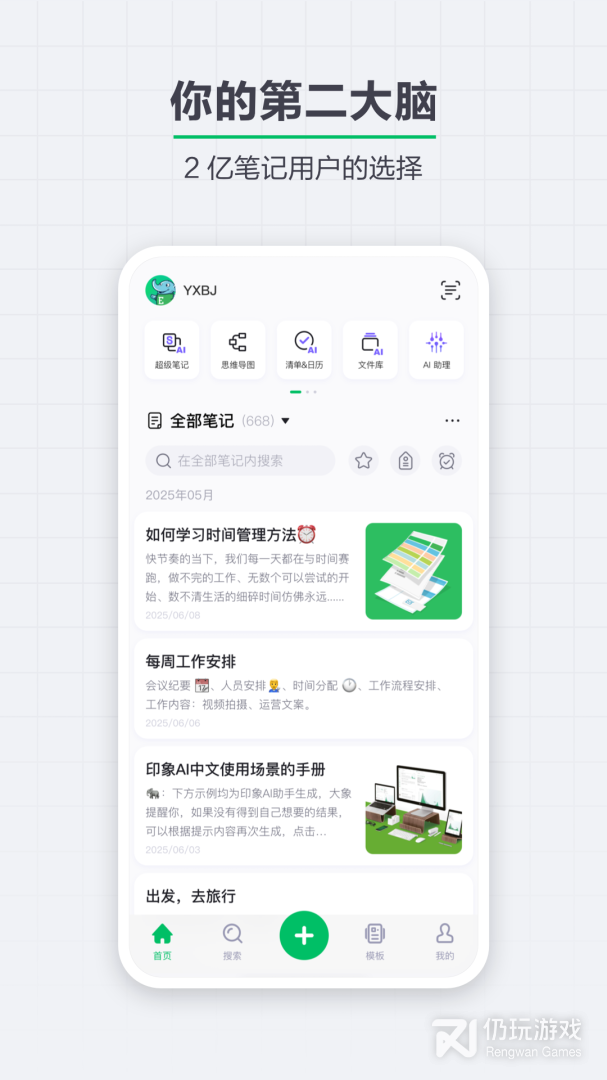 1、作为你的第二大脑,印象笔记2024版帮助用户记录一切!印象笔记2024版是一款办公学习助手软件,这款软件帮助用户整理繁杂信息,高效记录会议纪要、工作计划、学习笔记,巧用扫描功能将书籍、发票、名片等数字化存为笔记
