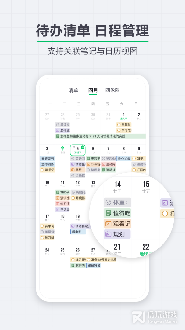 创建文字笔记、拍照、语音录入,待办事项与任务列表、添加各种附件