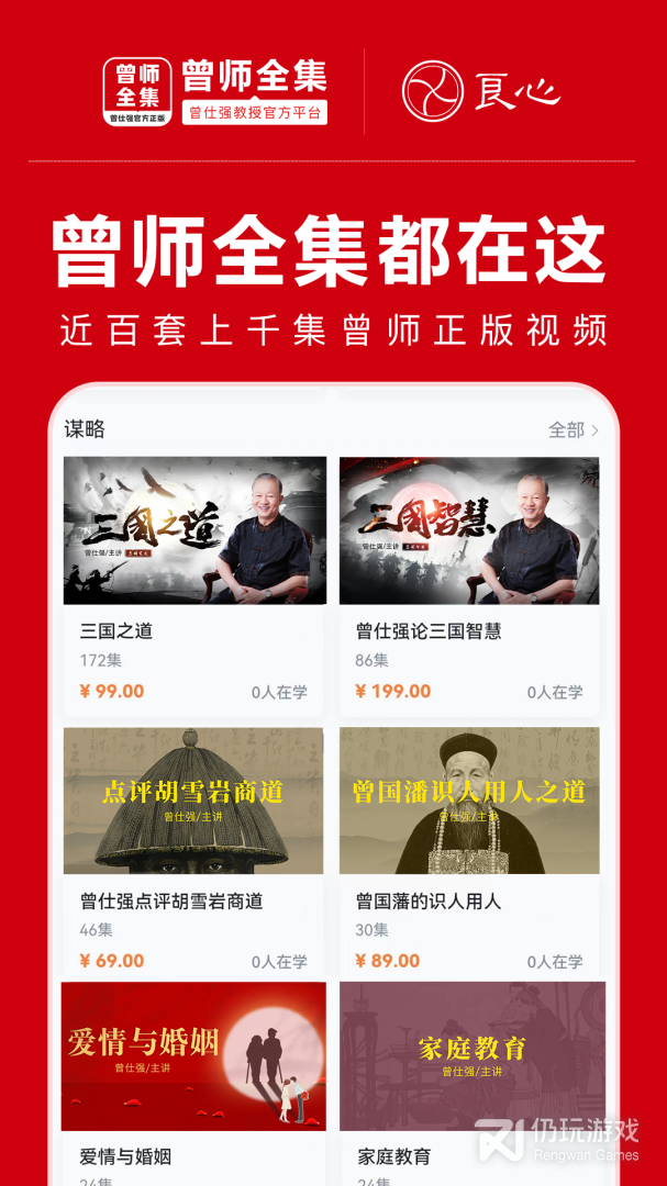下载曾师全集App是一款专注于国学教育的手机应用。该应用提供了曾仕强教授的所有国学线上课程,包括经史子集、兵法杂家、道、儒等多个领域。用户可以通过高质量的教学视频和文字教材,随时随地深入学习国学知识。
