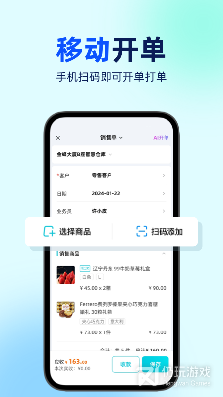 随时随地扫码、查价、开单、收银 ,一气呵成。无论在店内,还是外出谈业务,都可以随时开单