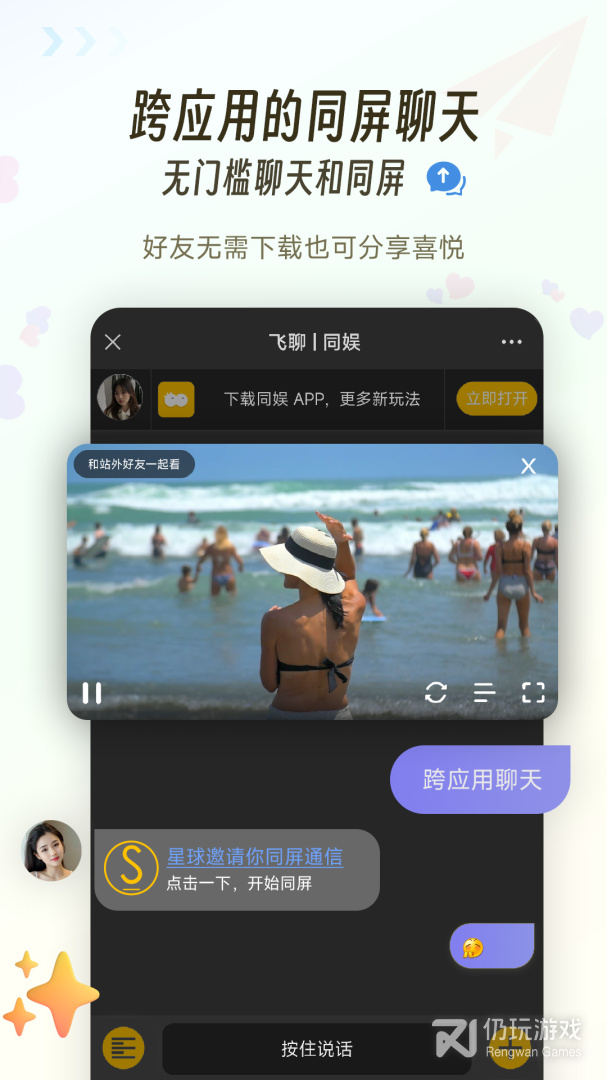1、提供多种聊天新形式,与好友尽情畅聊,在此玩转视频,完美实现你的创意,每个同屏背后都有一个有趣的灵魂等你去发现