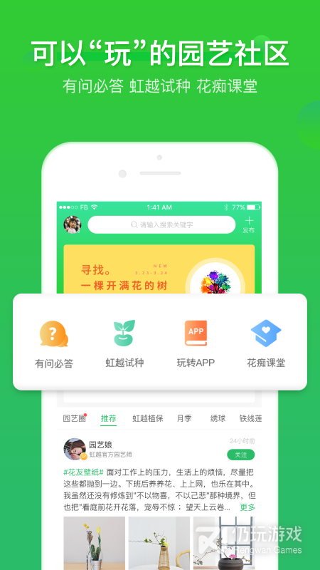 1、用户可以通过平台随时随地去了解各种园艺知识。还有专业的园艺教学,让用户可以学习到更多更好的园艺艺术和技巧。还有园艺百科,帮助用户在了解更多的园艺花草介绍