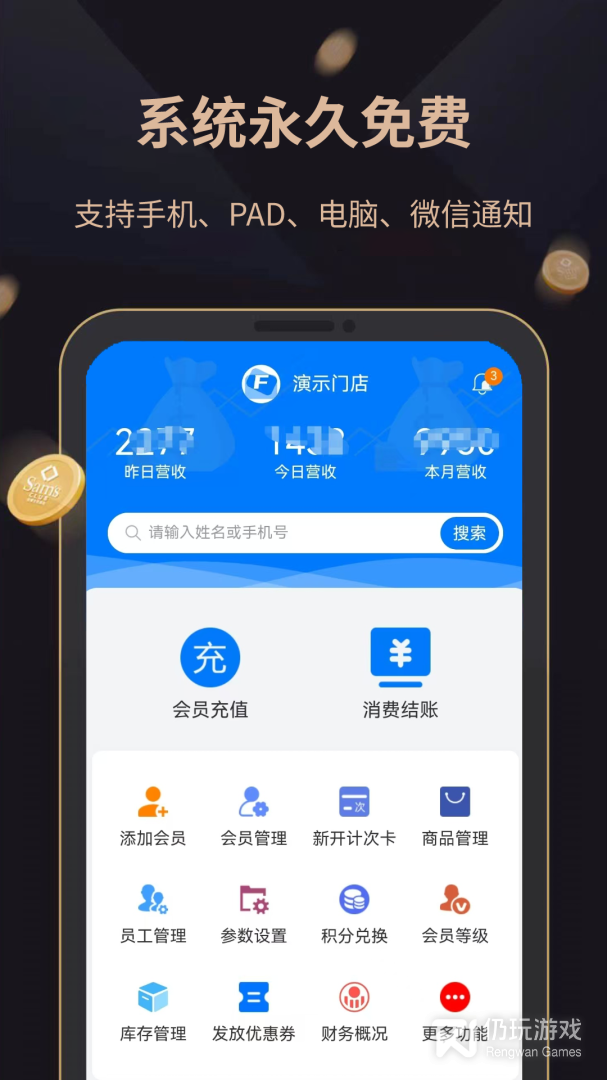 3、它可以让门店主轻松地管理收银、会员、库存、营销等各个环节,提升门店的效率和收益。帮助门店主建立和维护自己的会员数据库,记录会员的基本信息、消费记录、积分情况等。下载飞飞会员管理收银系统就能开始体验啦