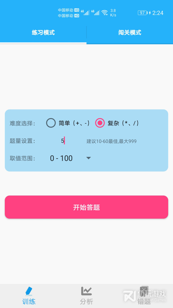 1、双模式训练,可以按照题目数量练习,也可以挑战自我极限。