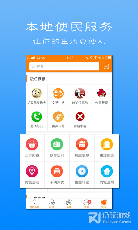 1、有吃喝玩乐推荐,房屋租赁,旅游推荐等等,同城娱乐,足不出户就可以观看身边的事情,网上便报名参加同城交友活动,更多功能等着你的到来,可以下载app试试
