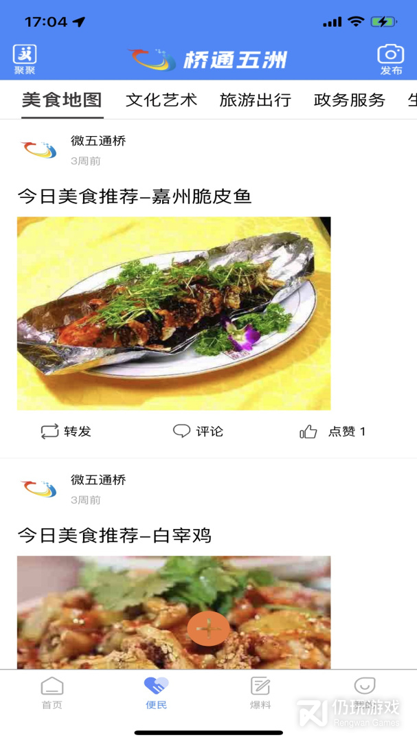 5、在便民服务页面中可以查看到美食、文化、旅游等多个方面的动态