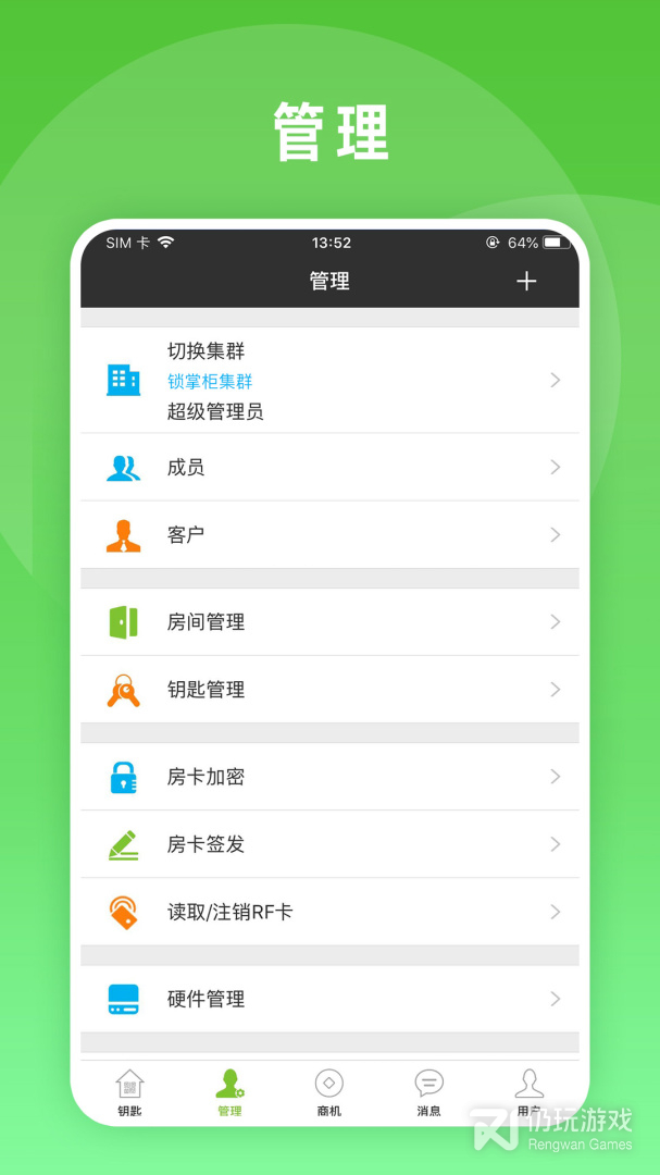 (2)门禁管理便捷:门锁钥匙储智能化管理,一键生成智能门卡,支持社交网络分享和门卡有效时间设定。