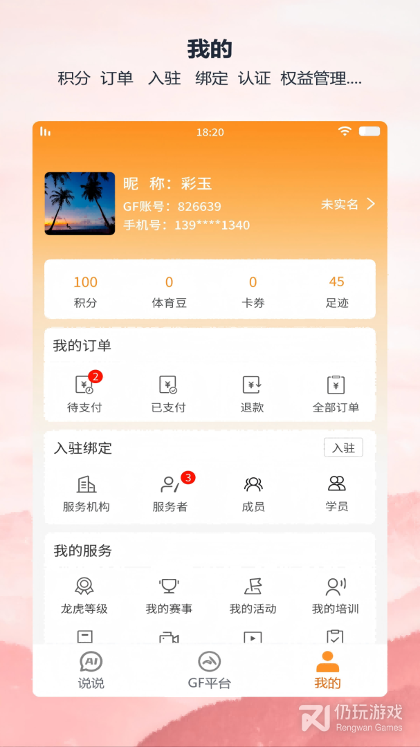 1、全民服务,可以查看赛事活动,排名榜以及视频等