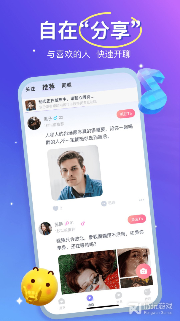 在这里,用户可以找到很多喜欢的网友,大家可以一起聊天,一起。也可以让大神带你去得分。在这里你可以畅所欲言,自由分享自己的感受和生活。在这里,每个人都将能够结交到喜欢自己和喜欢自己的人。