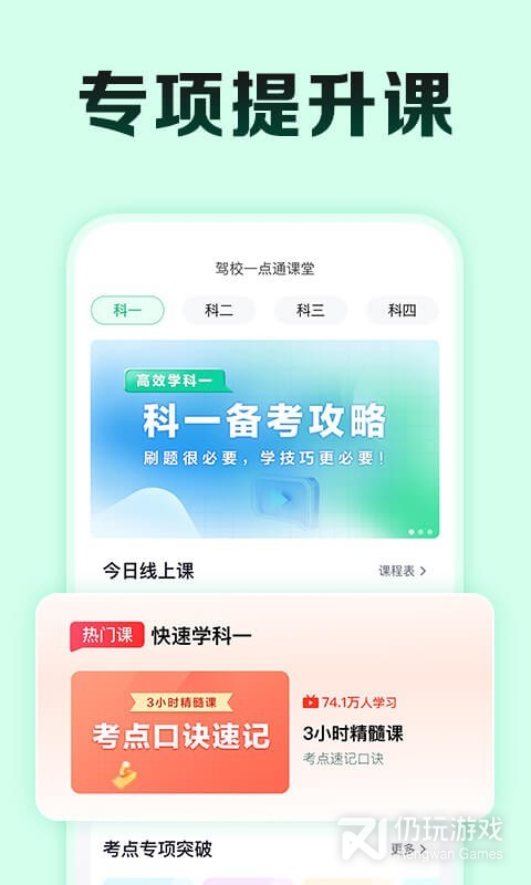 同时,上线涵盖科目一、科目二、科目三和科目四的线上直播课,方便学员系统性、全面性的学习,切实帮助学员提高成绩顺利通过考试拿到驾驶证。