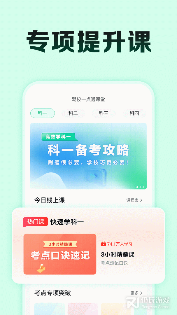 1、想要考驾照的小伙伴们可以在这里学习科目一和科目四的内容,非常齐全的新旧题库内容,理解真题,每个环节题库都有,随时学习,智能纠错,帮助提高考试通过率!需要的可以下载驾校一点通极速版app使用