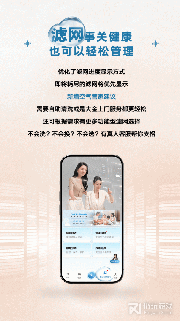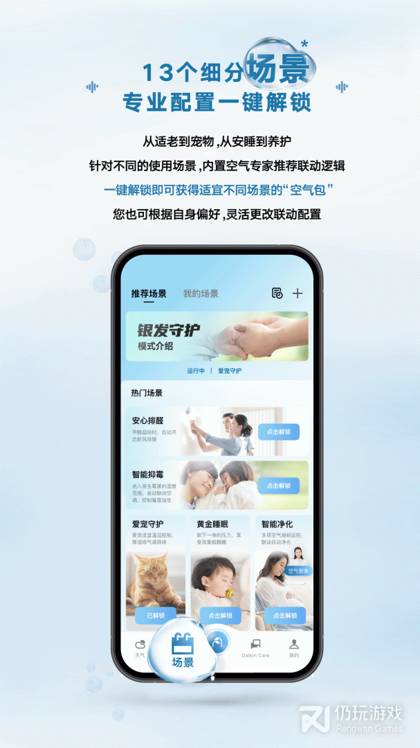 1、软件使用Wifi技术,可以帮助用户远程控制空调及空调异常通知等,并且软件还可以接入大金传感器组件,帮助空气质量实时监控等