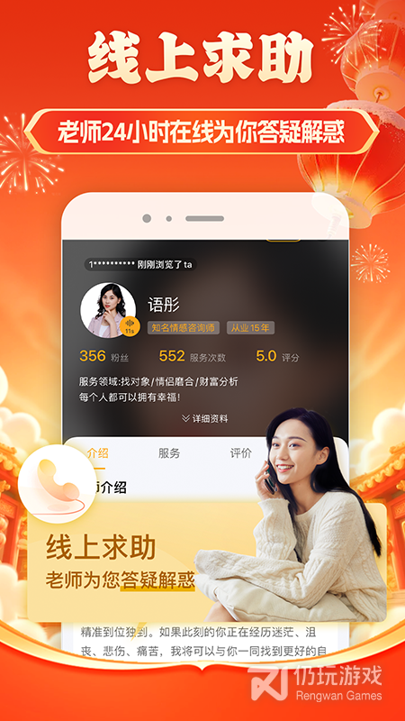 在线语音咨询通过八字算命,紫薇占卜,六爻占卜,面相手相分析,卜卦,塔罗占卜,批八字排盘,周公解梦,八字运势预测运势变化,解答关于自己婚姻家庭、财运、健康、事业学业、恋爱桃花、宝宝起名等问题。