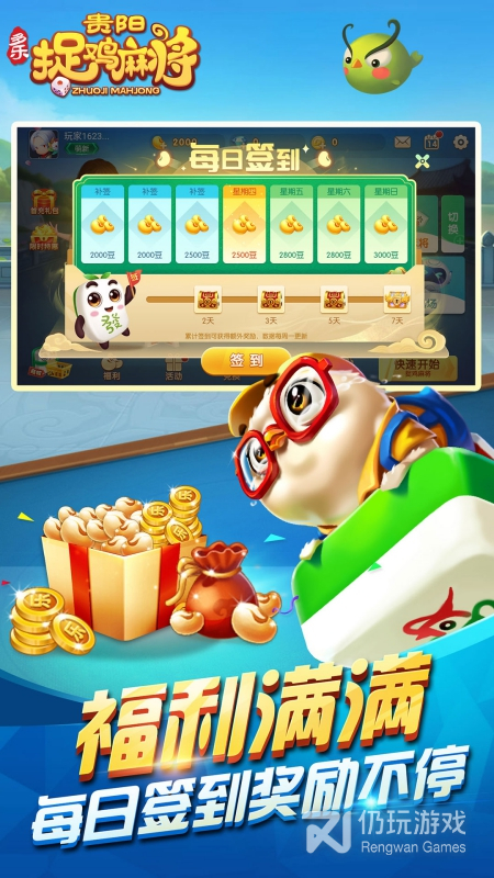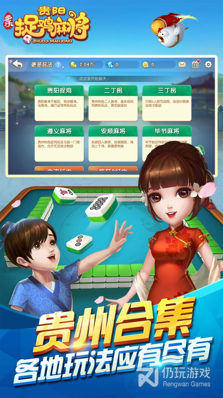1、在这里我们可以玩二人麻将也可以玩四人麻将,玩法大多数是以贵阳本土的玩法,最早是川麻将,现在添加了“捉鸡”、“通行证”、“金鸡”等特色元素,现在你可以轻松的看到对手的牌,赢起来不要太简单