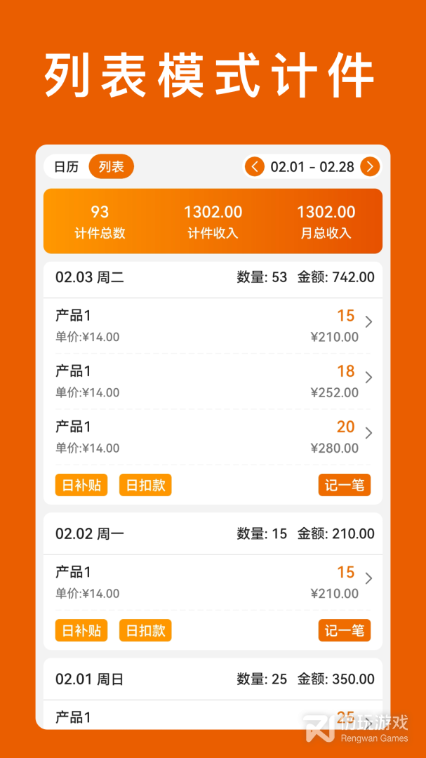 轻松记录每日件数,自动计算每日工资;