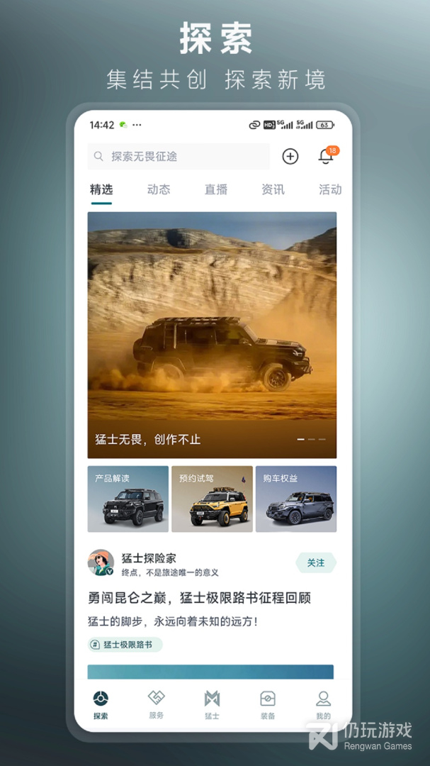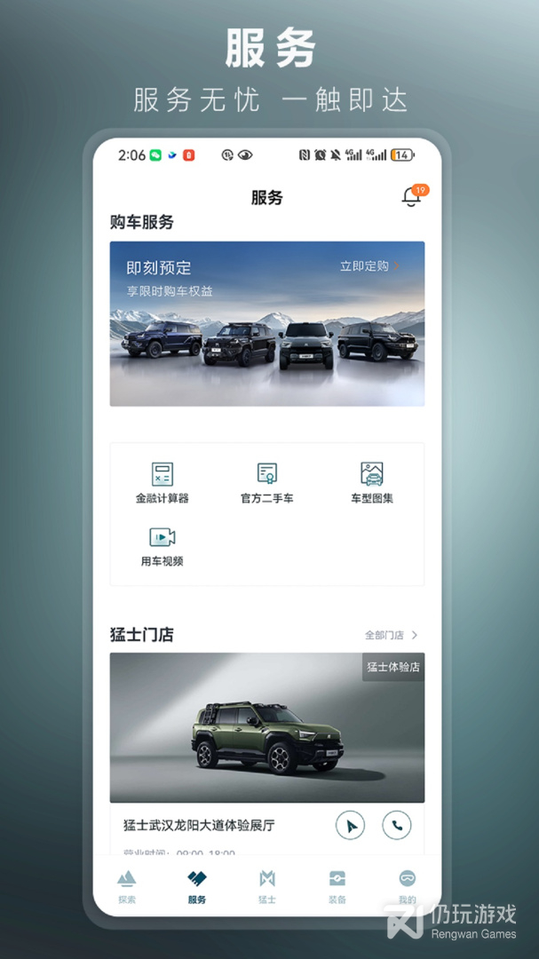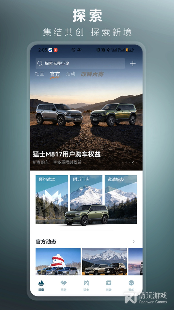 2、平台拥有订购,探索,活动,装备等等功能服务,可以给予用户超棒的用车生活体验
