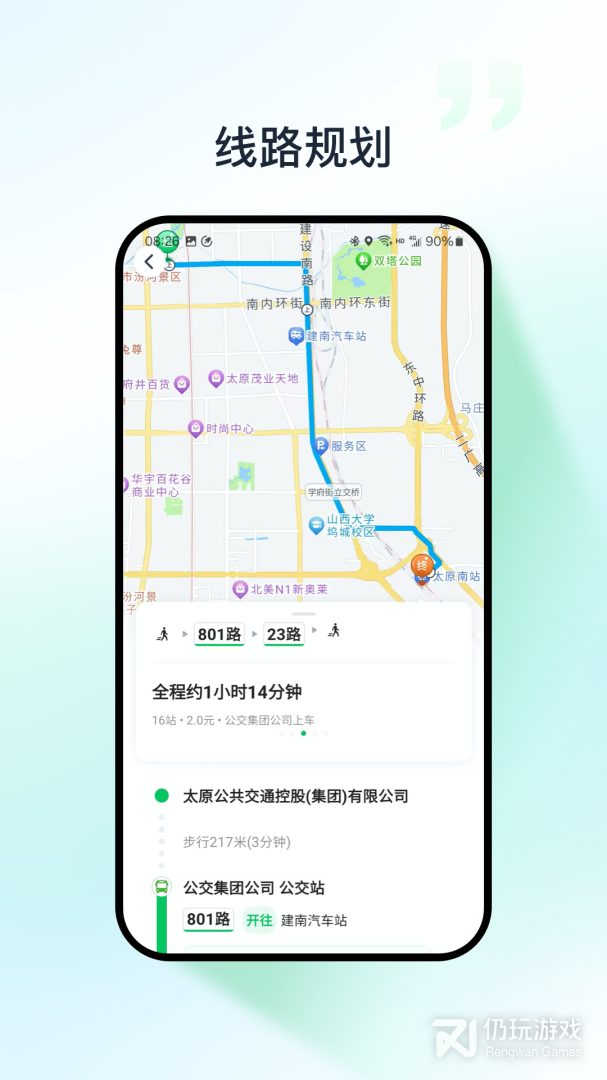 1、路线查询选择出发车站与目的地车站,为您智能选择公交换乘方案,乘换案内也无忧