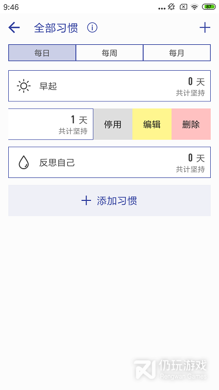 1、可以为每个习惯设置在一周内的哪几天重复,哪个时间段执行;