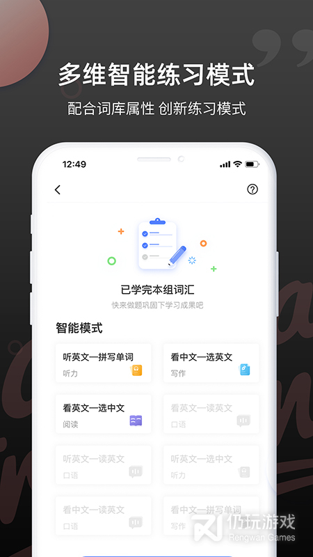 配合词库属性,智能推荐最佳练习模式,多维度让你全面掌握单词!