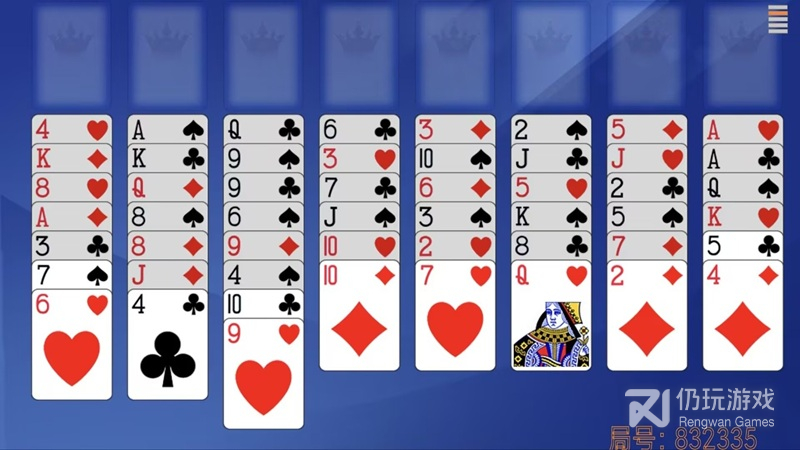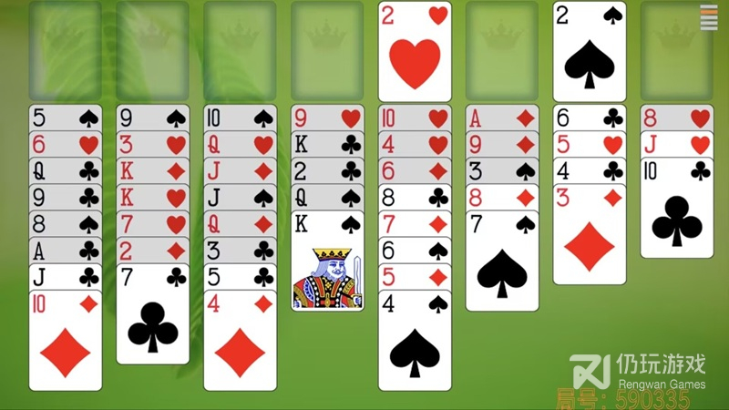 清除整个列。在可能的情况下,移动某个列的每张牌,然后尽可能再以大牌开头填充该列,开头的牌不要低于 10。最好使用 K 开头。