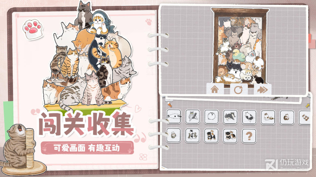 2、挤在一起的猫猫是个可爱喵喵拼图小游戏哦,挤在一起的猫猫在这里直接下载玩,排布喵喵方块,形成一幅幅好看的图画,解锁更多的元素