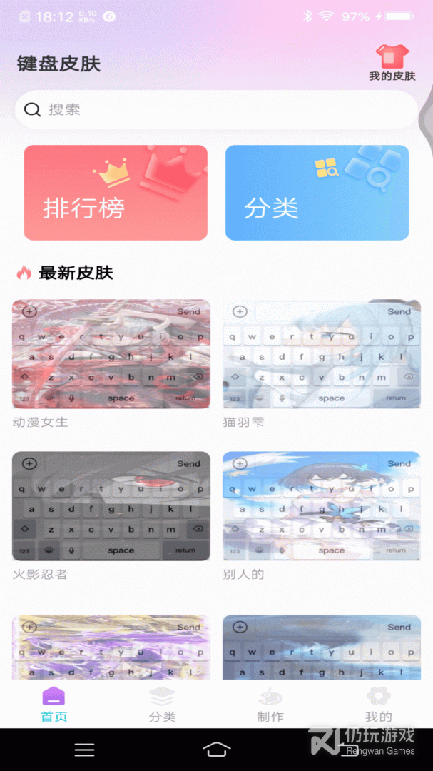 【键盘皮肤】游戏动漫时尚清新,多款个性皮肤任你挑;