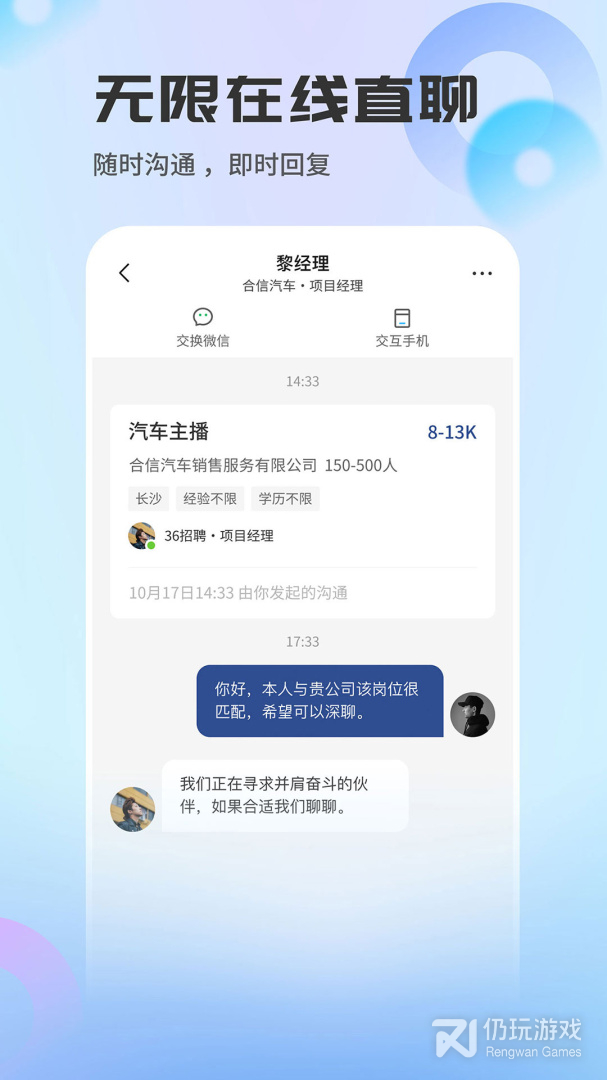 3、遇到感兴趣的公司,可以直接和公司老板沟通,了解岗位招聘的相关内容