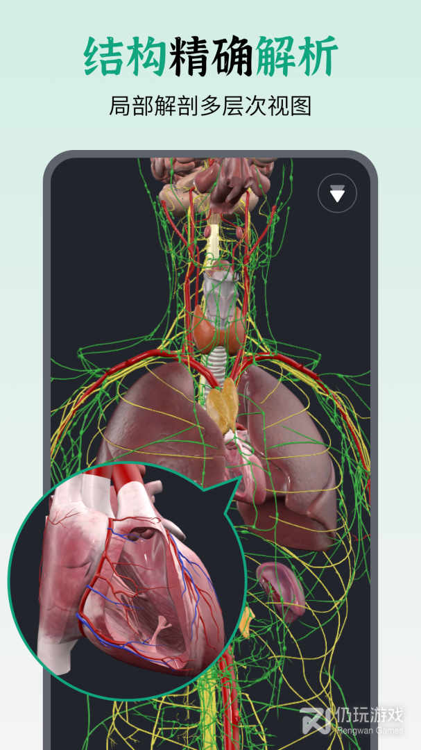 2. 除了整体解剖图外,该app还提供逐层剖析功能,使用户可以逐步了解人体内部结构的层次。