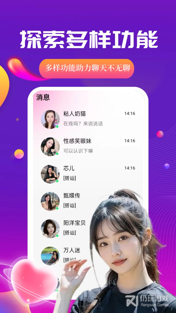 1、帮助用户结交同城附近的人,认识身边有趣的灵魂,可以通过搭讪,文字,语音,视频等方式与同城附近异性进行聊天互动。让你享受甜甜的恋爱,软件操作便捷,让你不再感到空虚,交友也会更简单方便
