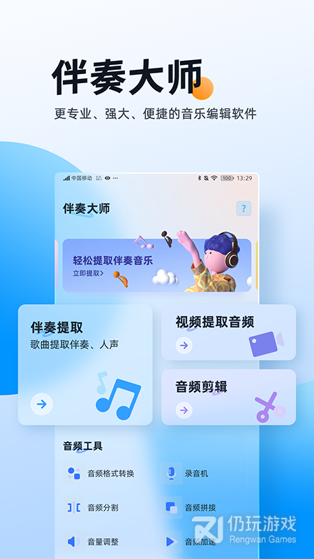 1、伴奏大师,专业的手机音频编辑、提取软件,能够将视频内的音频提取出来,轻松编辑音频文件,超多功能免费使用,更好处理手机音频,操作更轻松