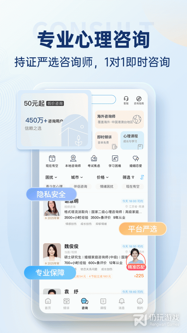 1、内置各种心理咨询服务,婚姻、恋爱、情绪、压力等一应俱全