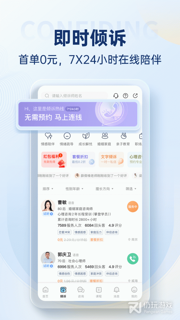 新人尊享特惠【首次倾诉免费红包】下载即可领取!