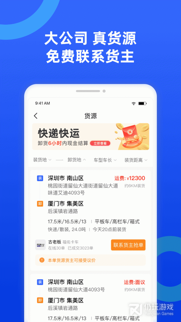 2、让货运更方便,件每日更新千万条货源信息,高价好货任您挑,省心还挣钱