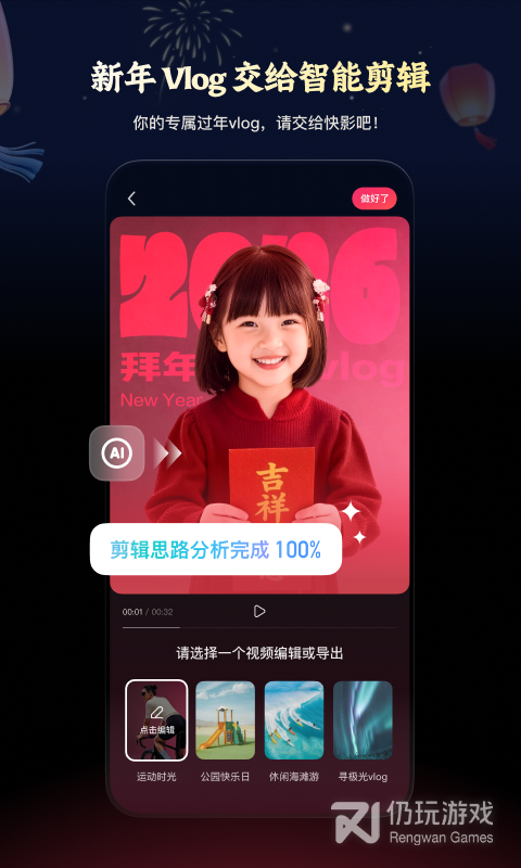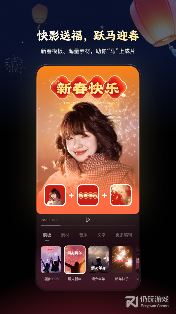 快影强大的视频编辑功能,丰富的音乐库、音效库和新式封面,让你在手机上就能轻松完成视频编辑,制作出令人惊艳的趣味视频。